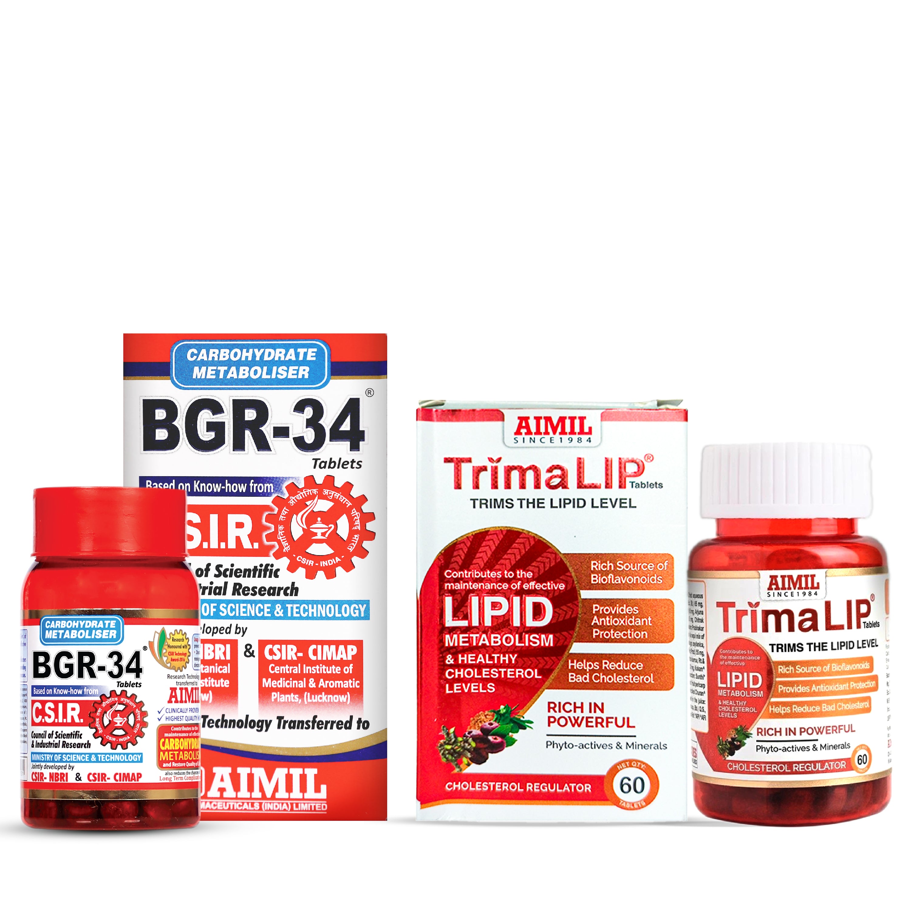 The Aimil Metabolic Balance Combo brings together the synergistic power of BGR-34 Tablets and Trimalip Tablets — two trusted Ayurvedic formulations that promote internal balance, vitality, and long-term wellness.